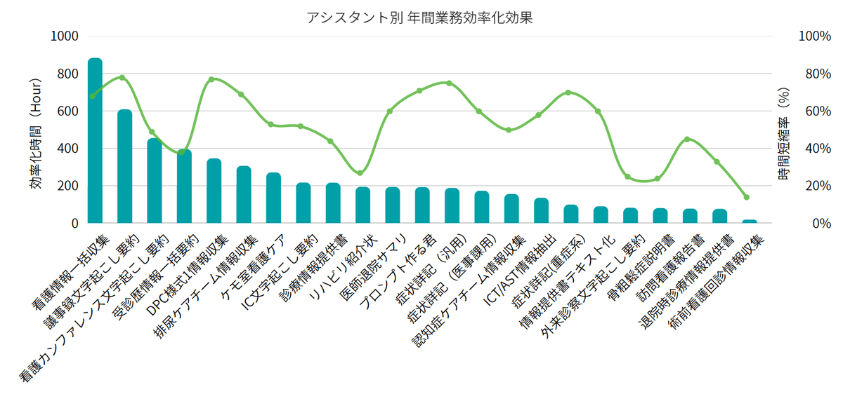 こうした成果を積み上げ、同院では期初に掲げた「年間7,800時間の業務創出」という目標に向け、着実な歩みを進めています。実際に、2025年4月から2026年1月にかけて生成AIを積極的に活用した職員111名を対象に行った調査では、年間5,472時間(月間約456時間)に相当する業務効率化効果が実証されました。入院患者数が前年比5%増加しているにもかかわらず、全体の時間外労働時間は減少傾向にあるなど、経営指標としてもその効果が明確に現れ始めています。